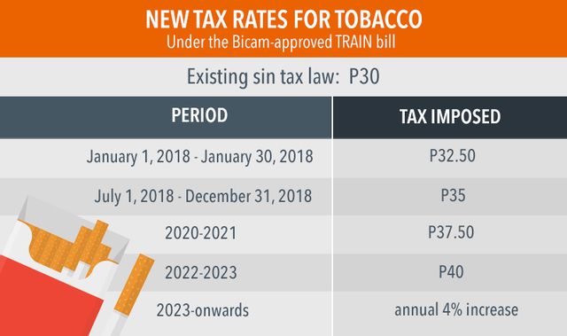Tobacco products will also be more expensive as under the Train law, the sin tax on such products will be increased.