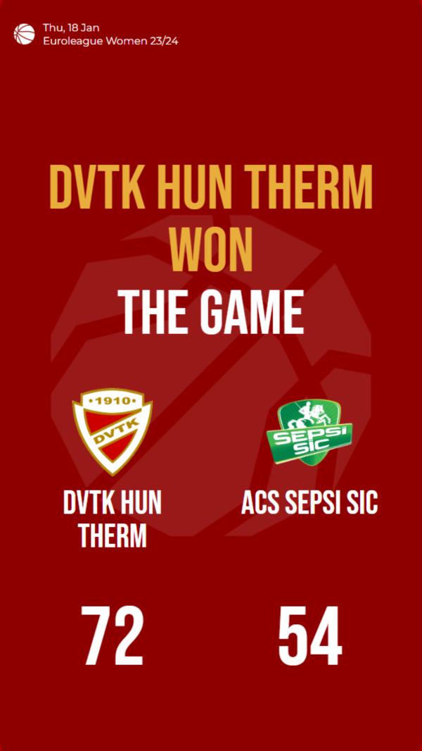 Title: DVTK Hun Therm Clinches Victory in Euroleague Women 23/24 Match against ACS Sepsi SIC
