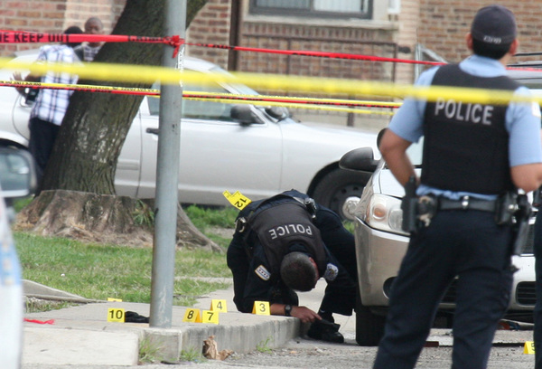 On Friday afternoon, seven yellow markers marked the spent shell casings police found in the alley behind the apartment complex. A group of children played basketball near the crime scene.
