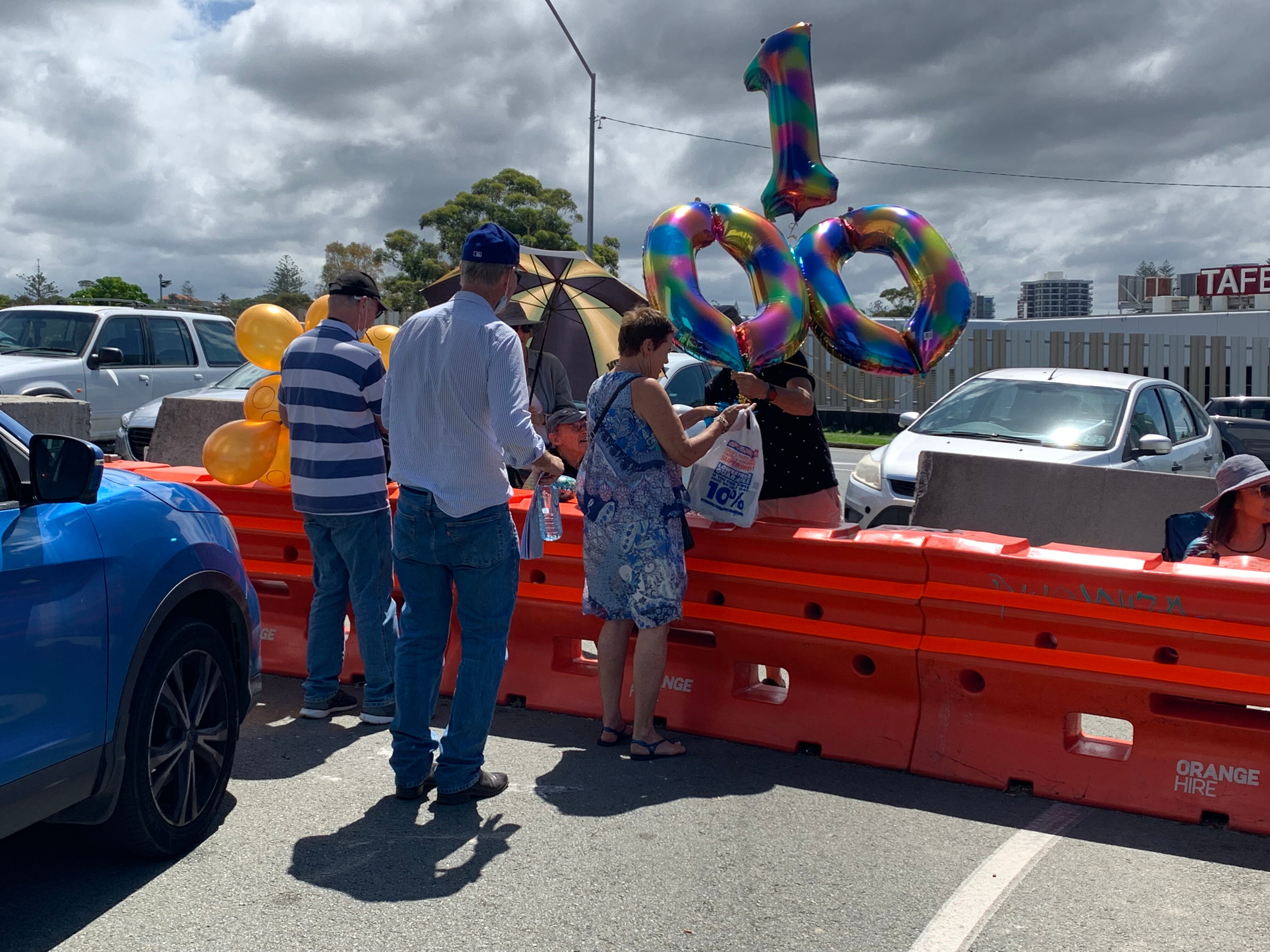 The middle of a street is an unusual place to throw a 100th birthday party, but the Bay Street border barricade has become a meeting spot for families separated by border restrictions.