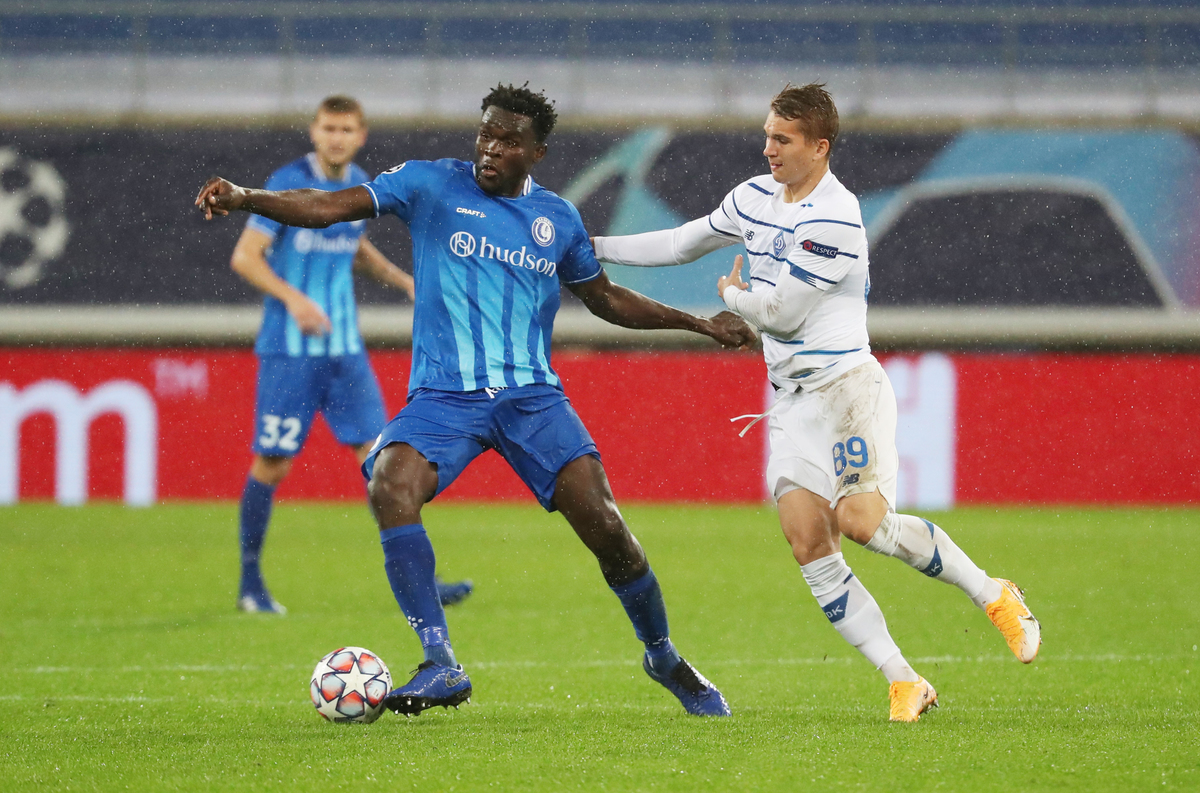Gent's Ukrainian forward Roman Bezus was sent off after committing two bookable fouls shortly after halftime and Dynamo took full advantage as they laid siege to the home team's goal and grabbed a 79th-minute winner.
