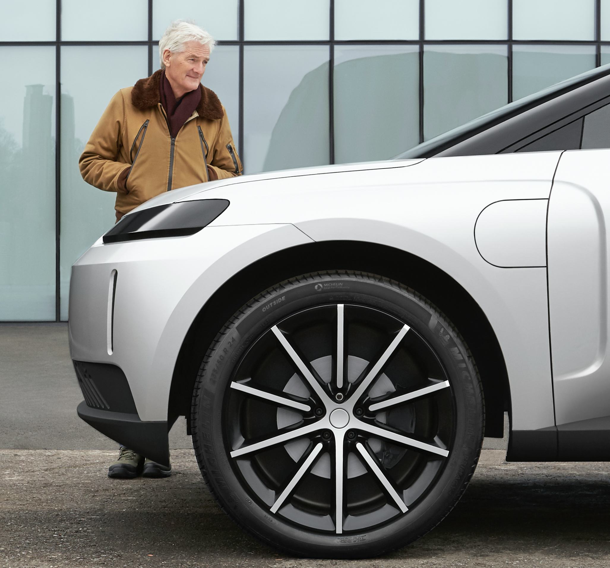 Dyson's electric SUV, built on a platform the company planned to use for other body styles in the future, is over 16 feet long, with enormous wheels at each corner that provided lower rolling resistance and a smoother ride on bad surfaces, along with substantial ground clearance.