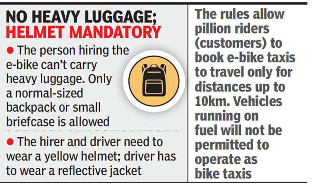 BENGALURU: The government on Wednesday unveiled a new policy to introduce electric bike taxi services in all major urban centres in the state, including Bengaluru, Hubballi-Dharwad, Mysuru and Mangaluru.