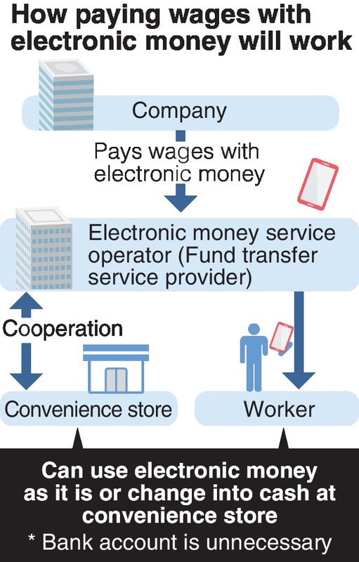 Japanese workers also could receive their wages as electronic money after the ordinance is revised.