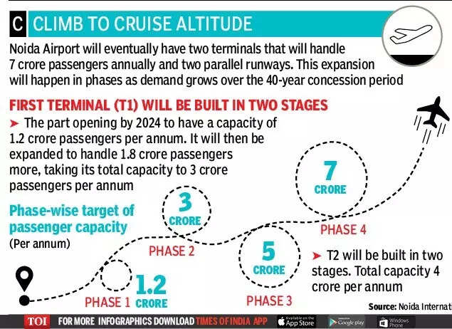 NOIDA: As Noida International Airport prepares to take off and make NCR among the first Indian regions to have two civilian or commercial airports, TOI brings you a brick-by-brick account of how it will take shape and grow.