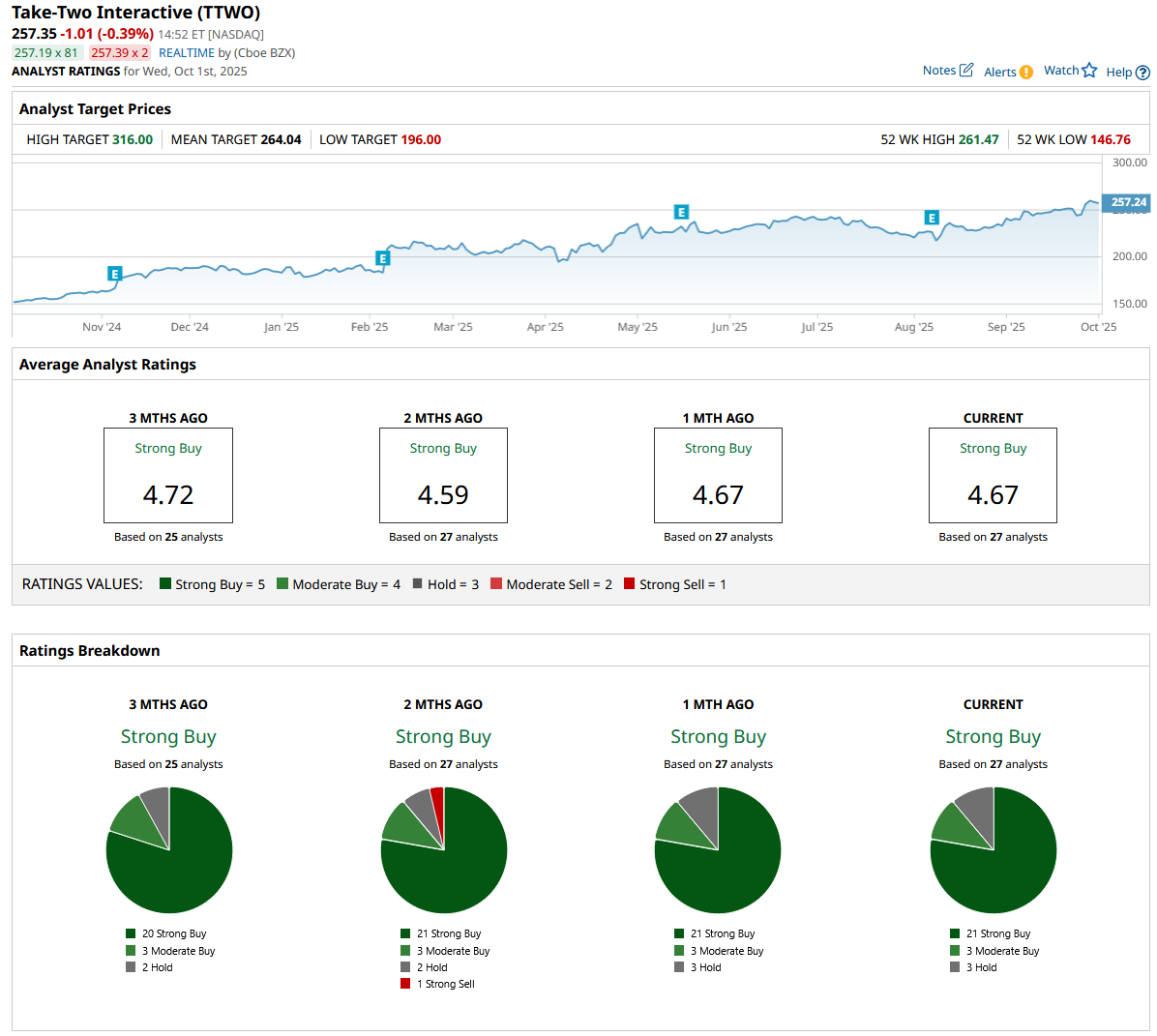 The consensus is just as strong. The 26 analysts covering TTWO stock rate it a consensus “Strong Buy,” with an average target of $264.04. With shares at $257.35, that points to about a 3% upside from here.