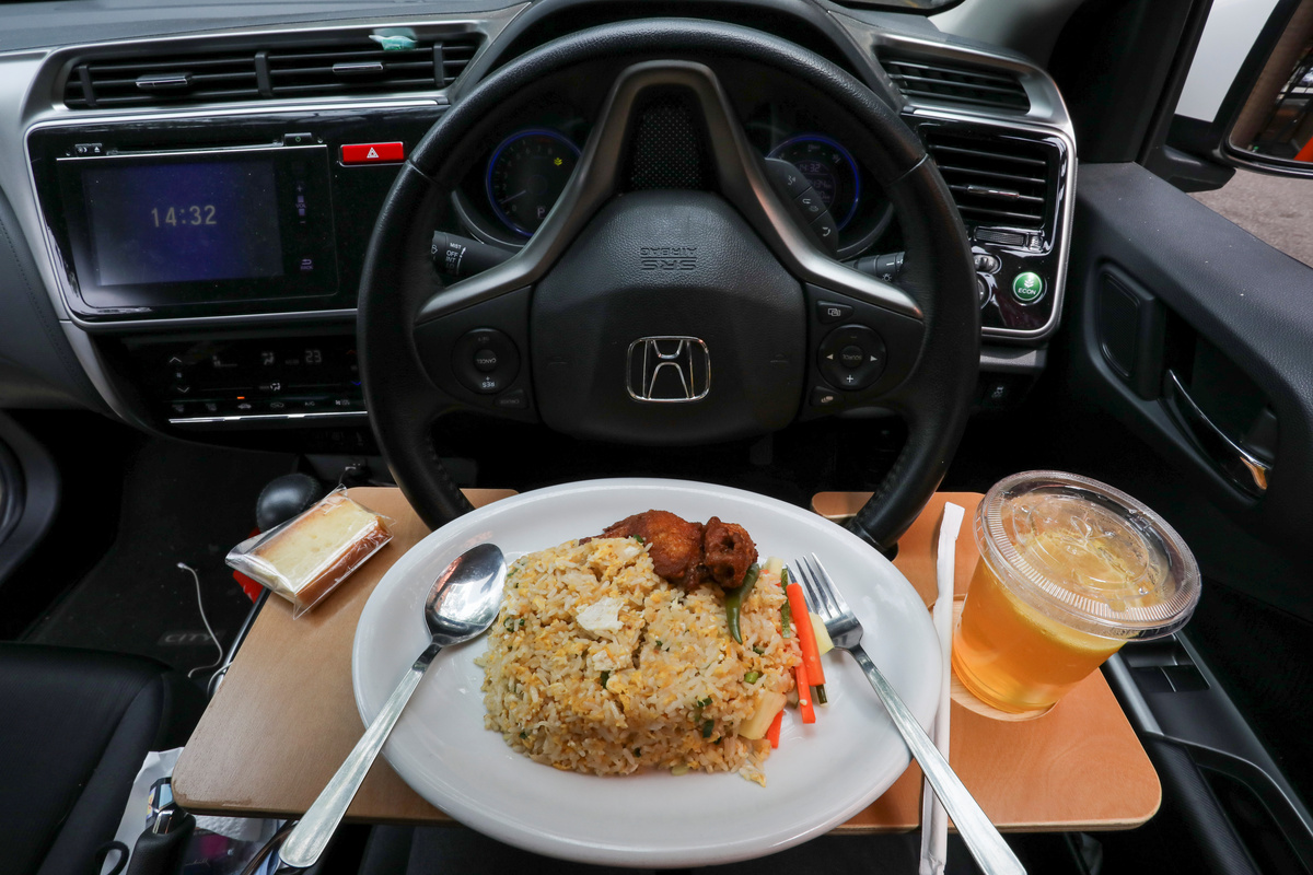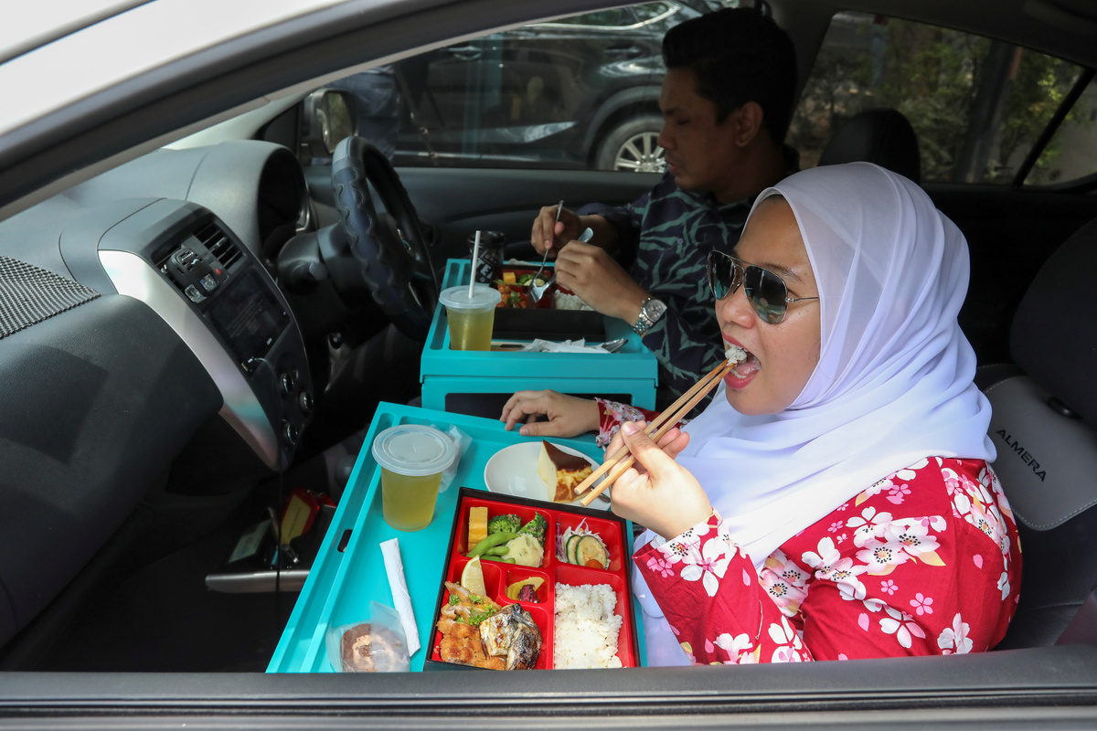 "I work at the bank so its not a suitable environment for me to eat. I prefer to go out and sometimes we need a change in scenery so that I can enjoy my food, even in a car," said Nor Shekin Nor Razali, who had lunch with a colleague on Thursday.