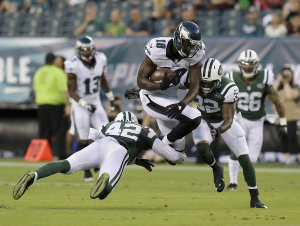 Turner's top highlight was his punt-return touchdown in the second quarter. He waited under the punt at Eagles' 29-yard line, slivered through the Jets' coverage unit and raced past their punter for his first touchdown of the summer. He finished the preseason with 17 catches for 165 yards. Pederson said Turner has done "everything we've asked him to do" and admitted that Turner is "making it hard on us."