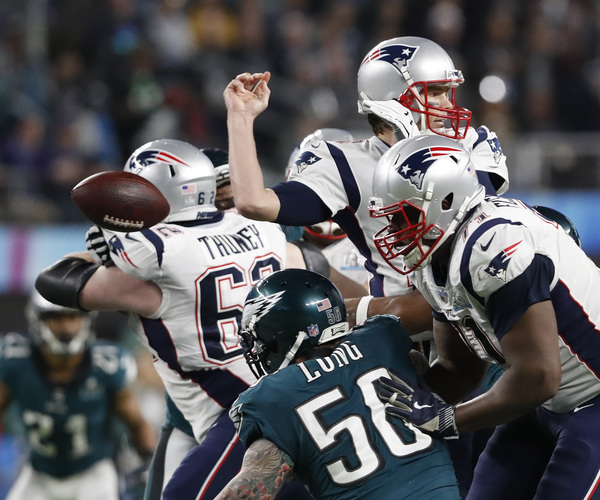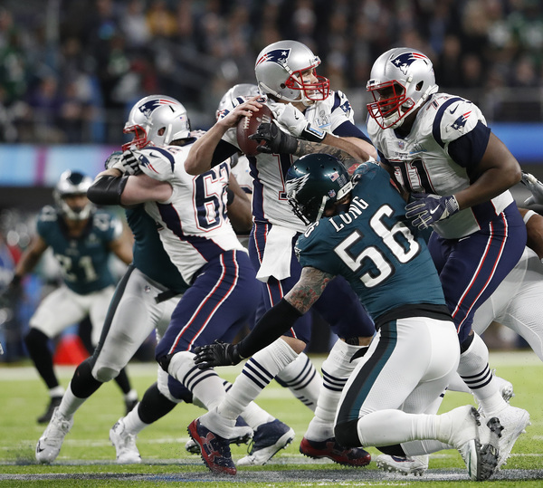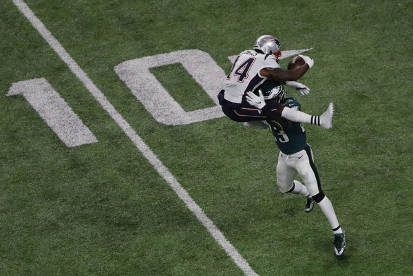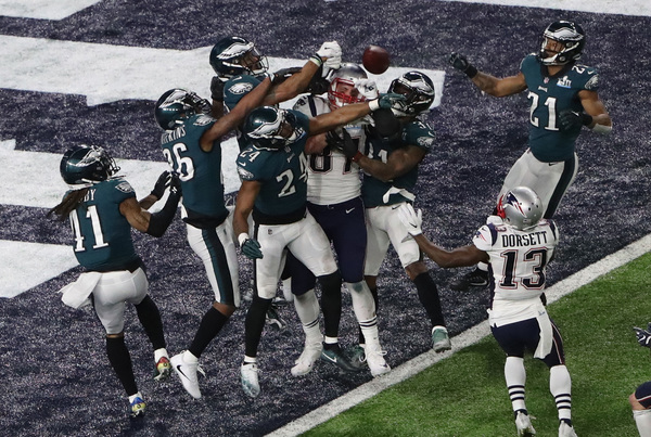 The Patriots again drove into the red zone, but their hopes for a touchdown were halted when Rodney McLeod wouldn't allow Brandin Cooks to leap over him on an end around and kept Cooks from reaching the first down. Belichick sent his kicker onto the field, and a bad snap caused them to miss the 26-yard chip shot.