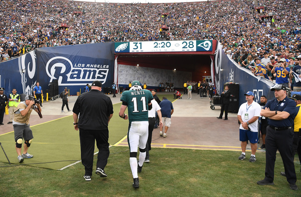 It was an ominous start for the Eagles when Wentz threw an interception the third play of the game. Nelson Agholor, who was coming off the best game of his career, bobbled Wentz's pass and lost it to the Rams. That set up a two-yard touchdown run Todd Gurley to take a quick 7-0 lead.