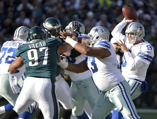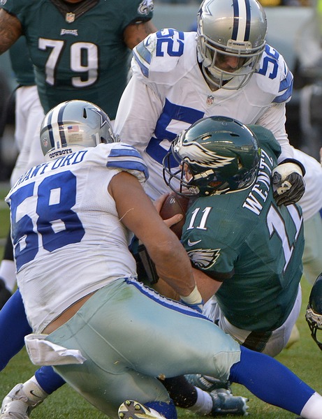 He was relieved by Sanchez, a former Eagles quarterback who made Eagles linebacker Jordan Hicks one of his favorite targets. Hicks had two interceptions off Sanchez, giving the second-year linebacker five this season.