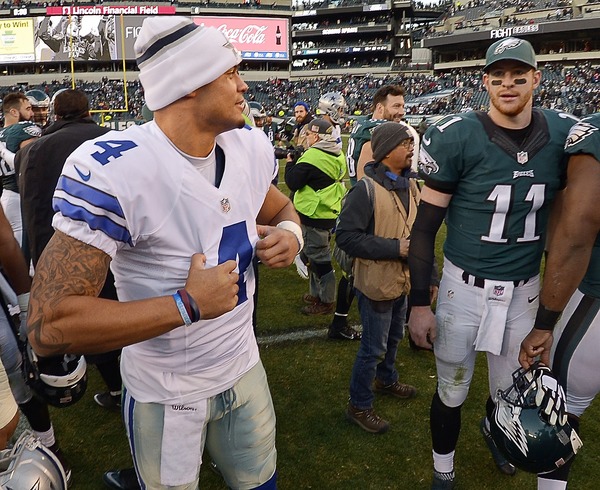 The Cowboys played three quarterbacks: Dak Prescott, Tony Romo, and Mark Sanchez. Prescott started the game and went 4 for 8 for 37 yards and no touchdowns. Romo's first action of the season came in the second quarter, when he led the Cowboys on a touchdown drive. Romo connected with Terrance Williams for a 3-yard score before leaving the game.