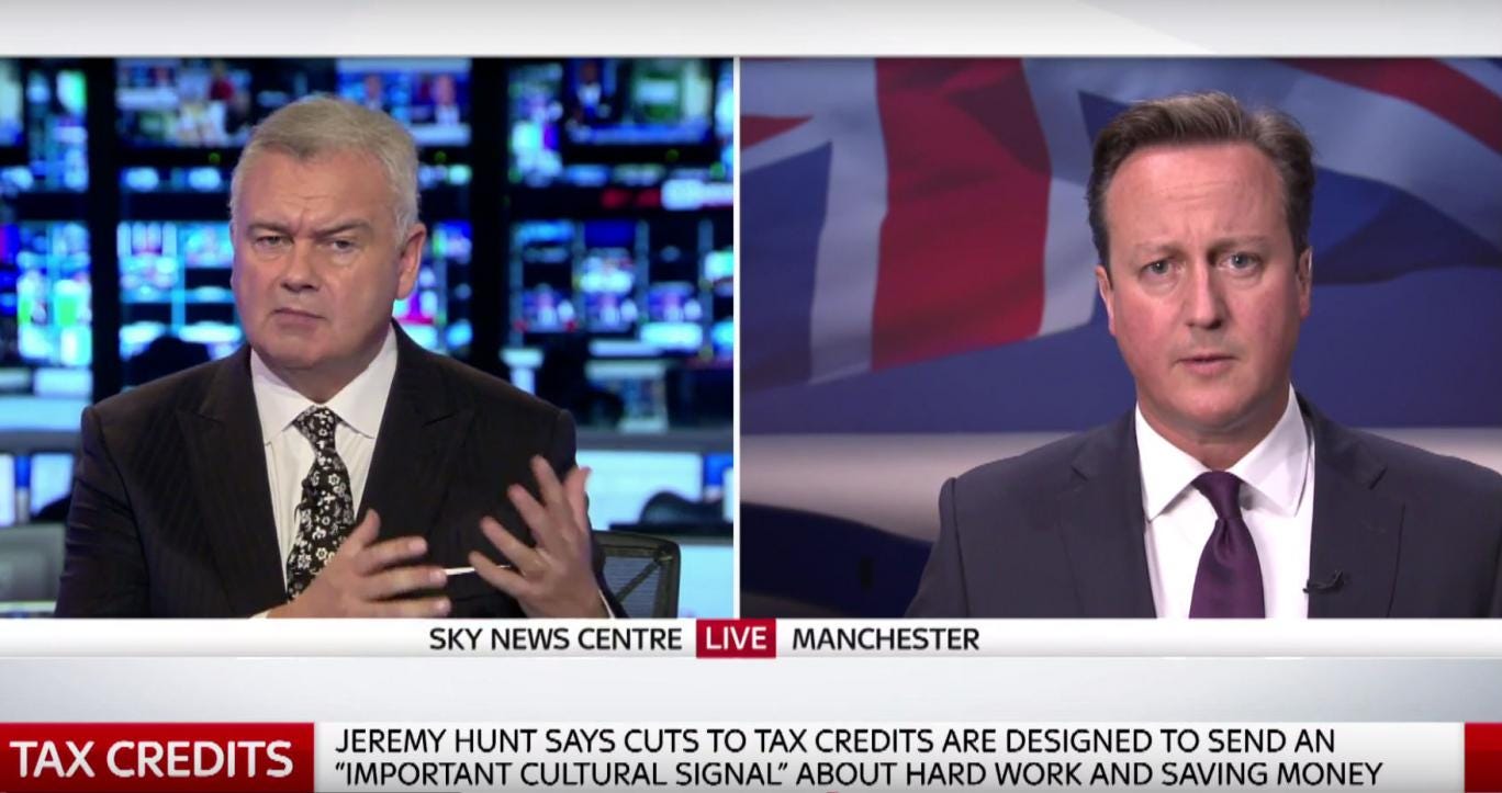 David Cameron appeared on Sunrise on Tuesday to defend recently announced cuts to working tax credits. Holmes criticised the “tone” taken by Jeremy Hunt, the Secretary of State for Health, who said cuts were a step towards “self-respect” when defending tax credits, and asked how the Government could justify cuts that will affect three million people to those who will be financially worse off.