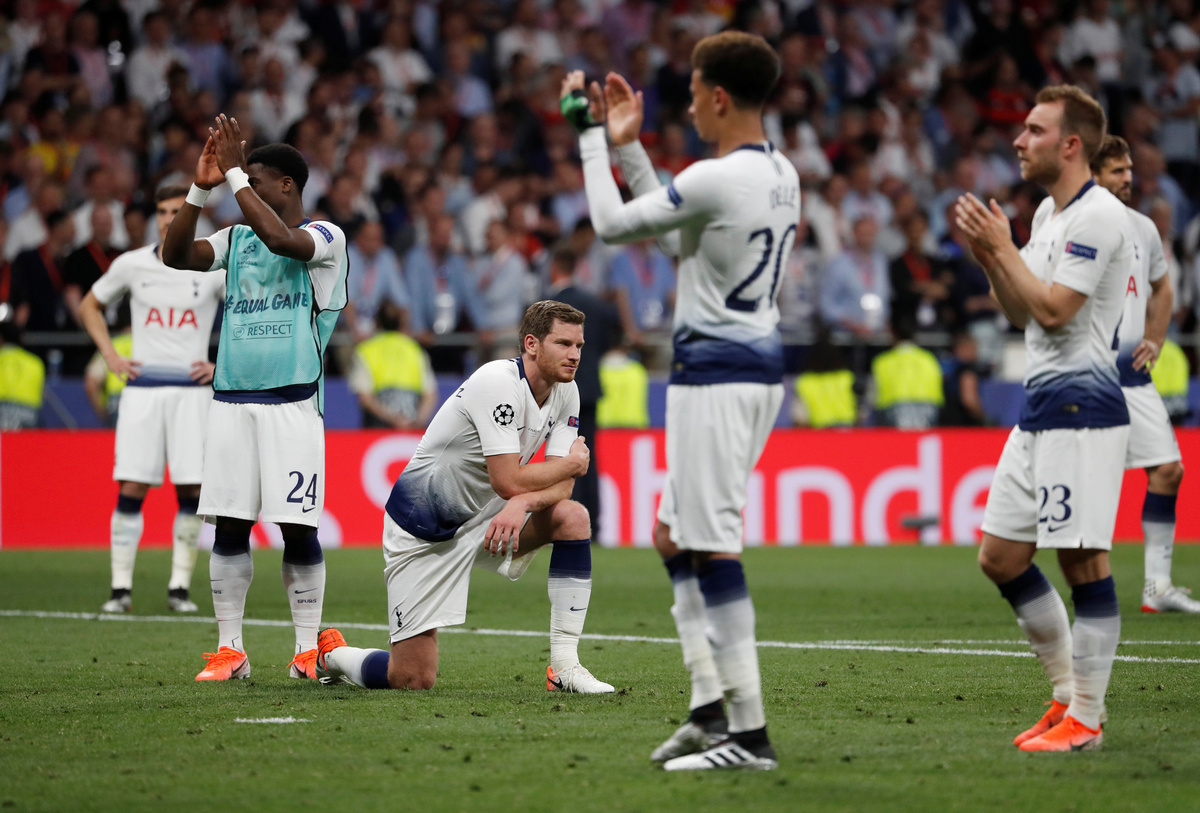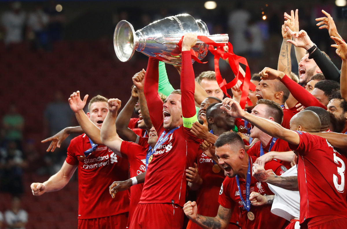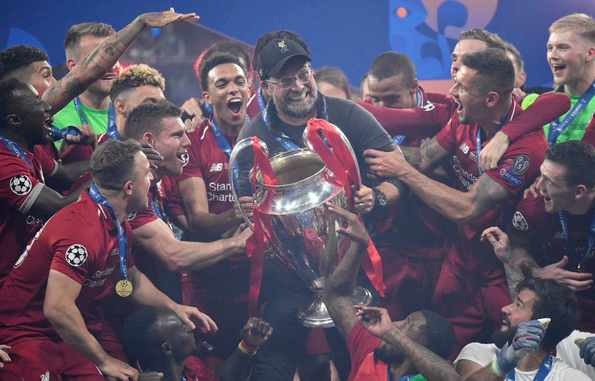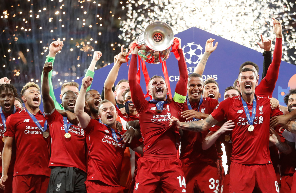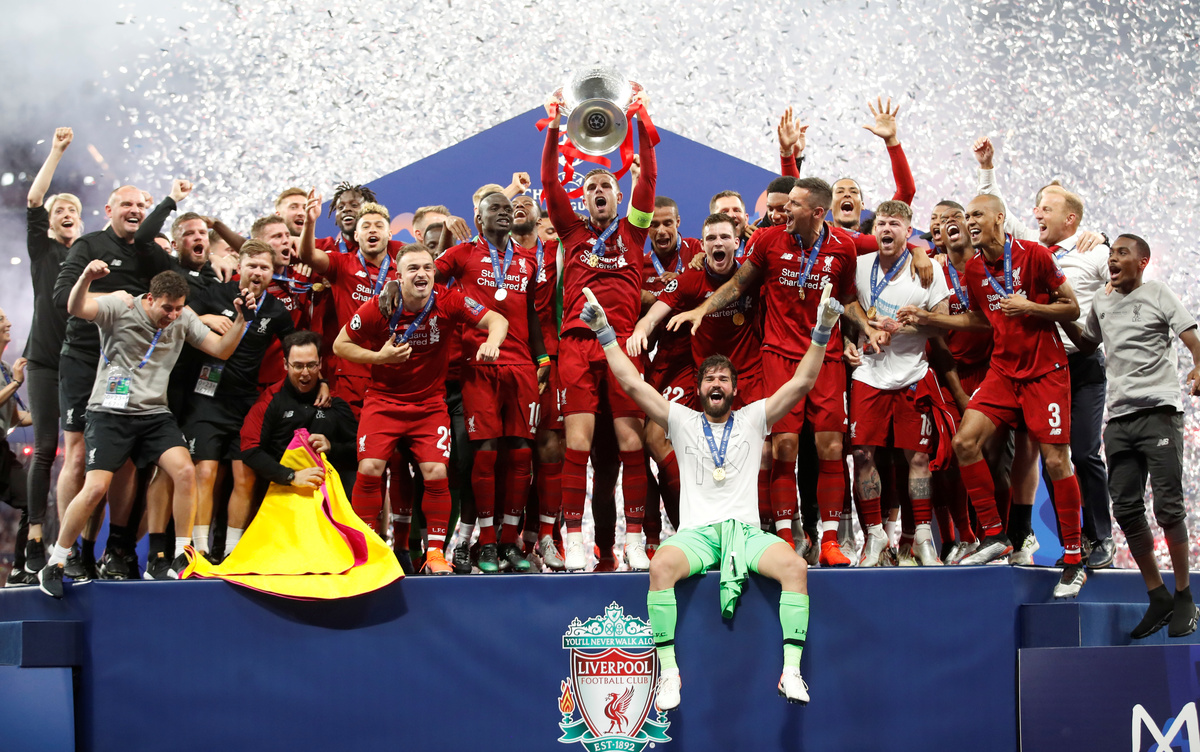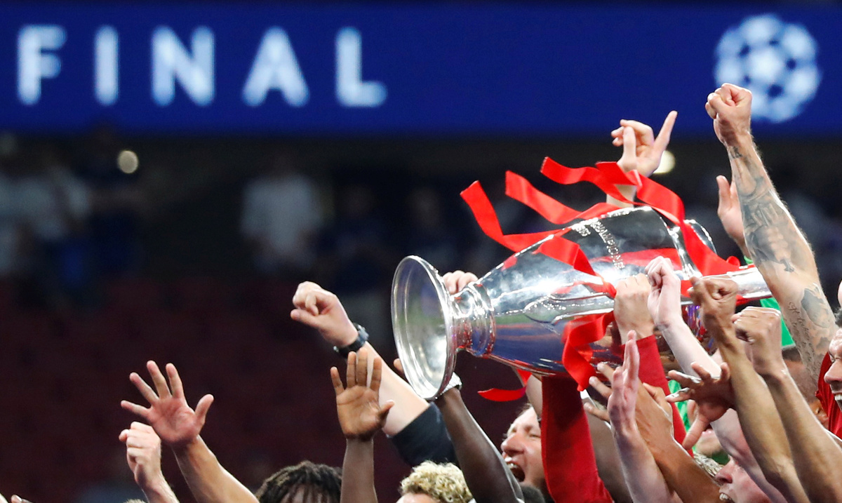 Soccer Football - Champions League Final - Tottenham Hotspur v Liverpool - Wanda Metropolitano, Madrid, Spain - June 1, 2019 Liverpool's Jordan Henderson lifts the trophy as they celebrate winning the Champions League REUTERS/Kai PfaffenbachSoccer Football - Champions League Final - Tottenham Hotspur v Liverpool - Wanda Metropolitano, Madrid, Spain - June 1, 2019 Liverpool's Jordan Henderson lifts the trophy as they celebrate winning the Champtions League REUTERS/Kai PfaffenbachSoccer Football - Champions League Final - Tottenham Hotspur v Liverpool - Wanda Metropolitano, Madrid, Spain - June 1, 2019 Liverpool's Mohamed Salah lifts the trophy as they celebrate after winning the Champions League REUTERS/Toby MelvilleSoccer Football - Champions League Final - Liverpool fans watching the final in Liverpool - Liverpool, Britain - June 1, 2019 Liverpool fans celebrate after the match. REUTERS/Phil NobleSoccer Football - Champions League Final - Tottenham Hotspur v Liverpool - Wanda Metropolitano, Madrid, Spain - June 1, 2019 Tottenham's Jan Vertonghen looks dejected and Dele Alli, Christian Eriksen and Serge Aurier applaud fans after Liverpool win the Champions League REUTERS/Susana VeraSoccer Football - Champions League Final - Tottenham Hotspur v Liverpool - Wanda Metropolitano, Madrid, Spain - June 1, 2019 Liverpool's Mohamed Salah in action with Tottenham's Jan Vertonghen REUTERS/Susana VeraSoccer Football - Champions League Final - Tottenham Hotspur v Liverpool - Wanda Metropolitano, Madrid, Spain - June 1, 2019 Liverpool's Jordan Henderson lifts the trophy as they celebrate winning the Champtions League REUTERS/Kai PfaffenbachSoccer Football - Champions League Final - Tottenham Hotspur v Liverpool - Wanda Metropolitano, Madrid, Spain - June 1, 2019 Liverpool manager Juergen Klopp lifts the trophy as they celebrate after winning the Champions League REUTERS/Toby MelvilleSoccer Football - Champions League Final - Tottenham Hotspur v Liverpool - Wanda Metropolitano, Madrid, Spain - June 1, 2019 Liverpool's Alisson and team mates celebrate winning the Champions League with trophy REUTERS/Susana VeraSoccer Football - Champions League Final - Tottenham Hotspur v Liverpool - Wanda Metropolitano, Madrid, Spain - June 1, 2019 Tottenham's Harry Kane walks past the trophy after losing the Champions League Final REUTERS/Carl RecineSoccer Football - Champions League Final - Tottenham Hotspur v Liverpool - Wanda Metropolitano, Madrid, Spain - June 1, 2019 Liverpool players celebrate winning the Champions League with trophy REUTERS/Susana VeraSoccer Football - Champions League Final - Tottenham Hotspur v Liverpool - Wanda Metropolitano, Madrid, Spain - June 1, 2019 Liverpool's James Milner in action with Tottenham's Danny Rose REUTERS/Carl RecineSoccer Football - Champions League Final - Tottenham Hotspur v Liverpool - Wanda Metropolitano, Madrid, Spain - June 1, 2019 Liverpool's Divock Origi scores their second goal REUTERS/Sergio PerezSoccer Football - Champions League Final - Tottenham Hotspur v Liverpool - Wanda Metropolitano, Madrid, Spain - June 1, 2019 Liverpool manager Juergen Klopp celebrates with Mohamed Salah after winning the Champions League REUTERS/Toby MelvilleSoccer Football - Champions League Final - Tottenham Hotspur v Liverpool - Wanda Metropolitano, Madrid, Spain - June 1, 2019 Tottenham's Fernando Llorente in action with Liverpool's Jordan Henderson and Divock Origi REUTERS/Toby MelvilleSoccer Football - Champions League Final - Tottenham Hotspur v Liverpool - Wanda Metropolitano, Madrid, Spain - June 1, 2019 Liverpool's Roberto Firmino team mates and staff celebrate after winning the Champions League Final REUTERS/Susana VeraSoccer Football - Champions League Final - Tottenham Hotspur v Liverpool - Wanda Metropolitano, Madrid, Spain - June 1, 2019 Liverpool manager Juergen Klopp lifts the trophy as they celebrate winning the Champions League REUTERS/Sergio PerezSoccer Football - Champions League Final - Tottenham Hotspur v Liverpool - Wanda Metropolitano, Madrid, Spain - June 1, 2019 Tottenham's Danny Rose in action with Liverpool's Mohamed Salah REUTERS/Susana VeraSoccer Football - Champions League Final - Tottenham Hotspur v Liverpool - Wanda Metropolitano, Madrid, Spain - June 1, 2019 Liverpool's Virgil van Dijk in action with Tottenham's Harry Kane REUTERS/Kai PfaffenbachSoccer Football - Champions League Final - Tottenham Hotspur v Liverpool - Wanda Metropolitano, Madrid, Spain - June 1, 2019 Tottenham's Kieran Trippier in action with Liverpool's Sadio Mane REUTERS/Sergio Perez