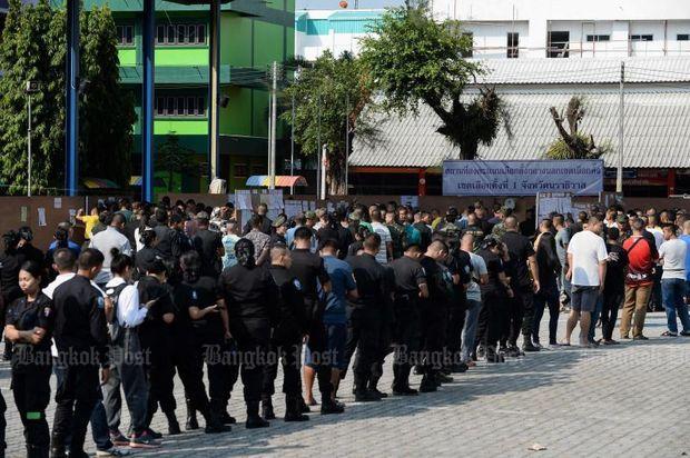 In Dusit district -- home to military offices and government buildings -- voters crowded into a schoolyard before a polling station there opened.
