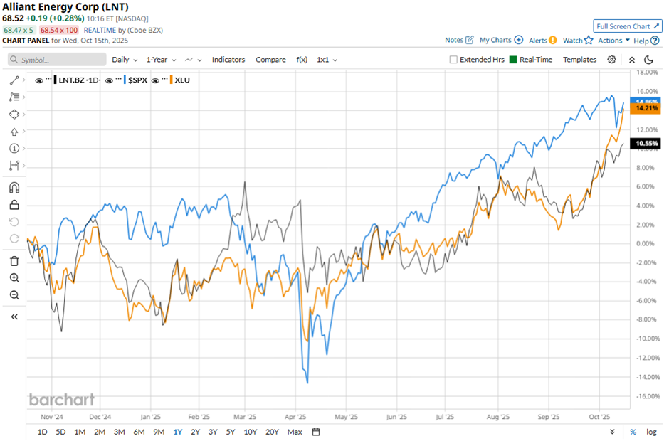 LNT stock has risen 12.2% over the past 52 weeks, underperforming both the S&P 500 Index's ($SPX) 15.1% gain and the Utilities Select Sector SPDR Fund's (XLU) 15.4% increase over the same period.