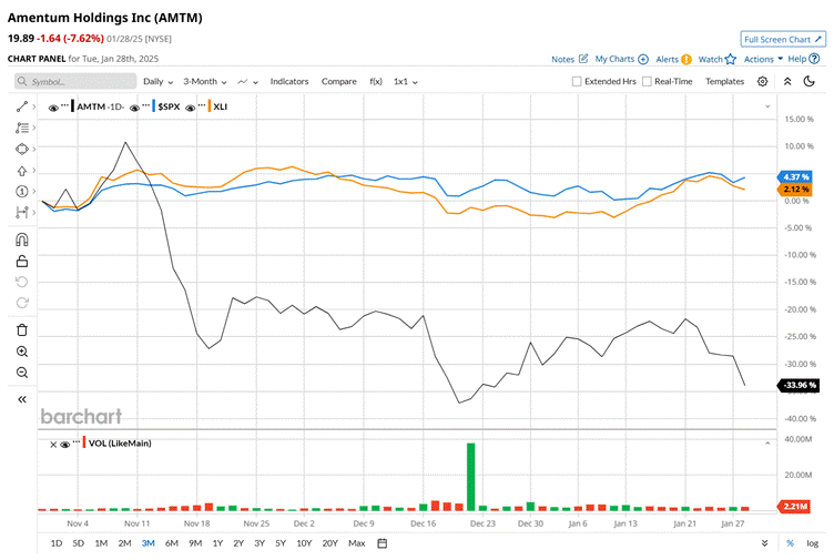 Shares of AMTM have declined 35.6% over the past three months, significantly lagging behind both the S&P 500 Index's ($SPX) 4.2% rise and the Industrial Select Sector SPDR Fund’s (XLI) 1.8% return over the same stretch.