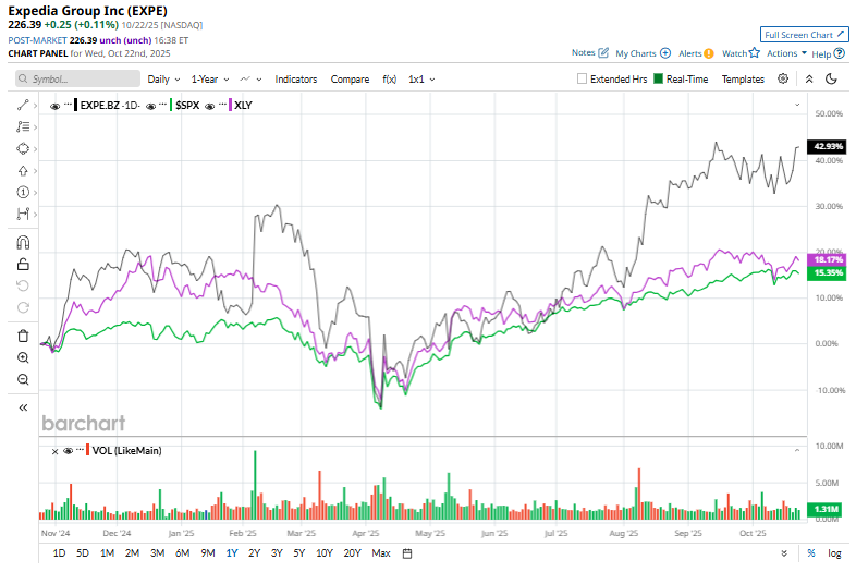 Shares of EXPE have gained 40.5% over the past 52 weeks, outperforming both the S&P 500 Index's ($SPX) 14.5% rise and the Consumer Discretionary Select Sector SPDR Fund's (XLY) 20.4% return over the period.