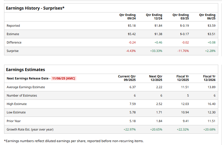 The travel titan is expected to announce its fiscal Q3 2025 earnings results after the market closes on Thursday, Nov. 6. Ahead of this event, analysts expect the company to report a profit of $6.37 per share, up nearly 23% from $5.18 per share in the year-ago quarter. It has surpassed Wall Street's earnings estimates in two of the last four quarters while missing on two other occasions.