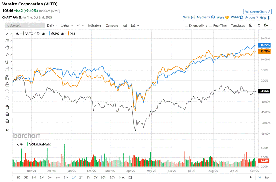 Shares of Veralto have declined 4.3% over the past 52 weeks, lagging behind both the S&P 500 Index's ($SPX) 17.6% rise and the Industrial Select Sector SPDR Fund’s (XLI) 14% uptick over the same time frame.