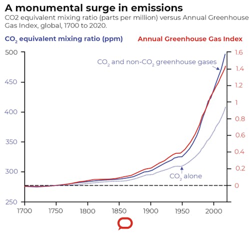 Carbon dioxide is now pouring into the atmosphere at a rate of two to three parts per million each year.