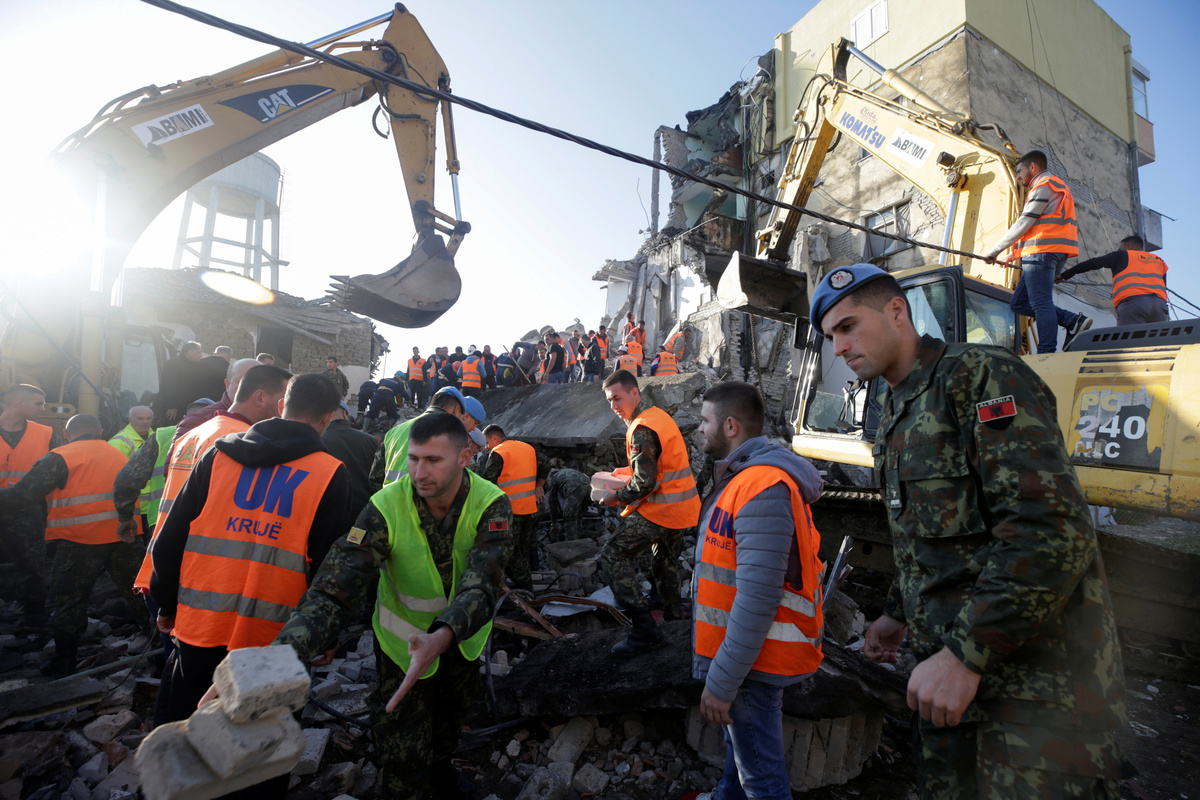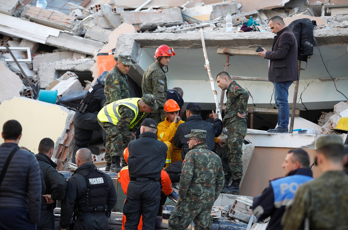 "Durres and Thumane are the areas worst hit. Rescue-and-save work continues in the collapsed buildings there," Xhacka, the defence minister said, as troops extricated a victim from a stricken hotel in Durres.