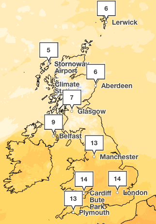 Temperatures will remain variable across the weekend, peaking at 14C across the South on Saturday, while cooler temperatures in the single digits are expected further north.