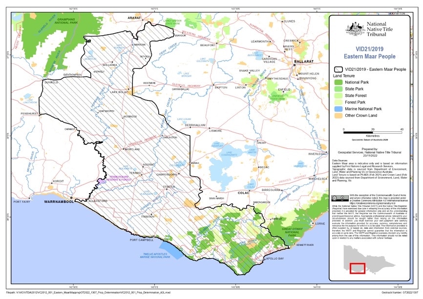 The determination acknowledged Eastern Maar's ongoing connection and intrinsic relationship with their country in south-western Victoria, which included much of the coastline of the Great Ocean Road and part of the Great Otway National Park.