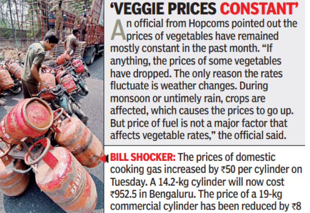 BENGALURU: With prices of various commodities, including cooking gas and edible oil increasing, eating out and takeaways may soon become a costly affair.