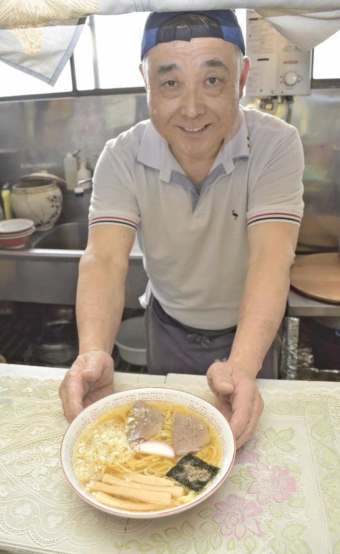 The other popular menu items include nurume (slightly warm) chuka-soba (550 yen), with its noodles washed in cold water after being boiled, and the summer dish tsumetai (cold) chuka (600 yen), featuring cold noodles dipped in soup with ice cubes.
