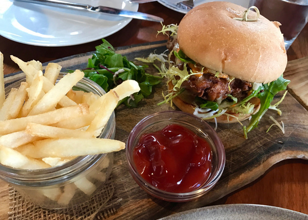 Sugar buzzed and java jangled, we continue our perambulations, criss-crossing the neighborhood half a dozen times, like Jeffy from "Family Circus." Call it the path of least efficiency _ or maximum FitBit-edness. We're just trying to get enough exercise to justify brunch at the chic Kettner Exchange, where the second floor dining room sports plush booths and a wood-paneled ceiling that arches high overhead. And chef Brian Redzikowski's brunch menu ranges from eggs benedict with tenderbelly bacon and tomato confit ($13) to avocado-burrata toast ($12) and an addictive crispy chicken sandwich with arugula and chipotle aioli ($15).