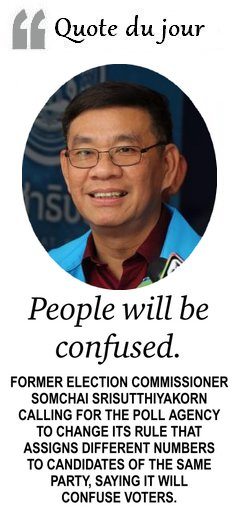There are many issues in dispute. First is the EC decision that could fairly be called the "Thaksin Rule". Out of the blue, without consultation and without justification, the EC decreed that no election material can carry a photo of anyone but the specific candidate, his or her party leader, or the party's nominee for prime minister. This is an obvious rule aimed at Pheu Thai and allied parties, who are barred from displaying photos of fugitive former premiers Thaksin and Yingluck Shinawatra. But it will hurt others much more. The Democrats, as an early example, are barred from using photos of their founder, or even of the much-admired ex-prime minister Chuan Leekpai.
