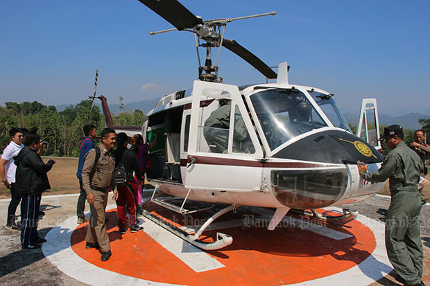 In Kanchanaburi province, a helicopter was sent up on Saturday to distribute election materials to four polling stations in the Thungyai Naresuan Wildlife Sanctuary in Sangkhla Buri district.