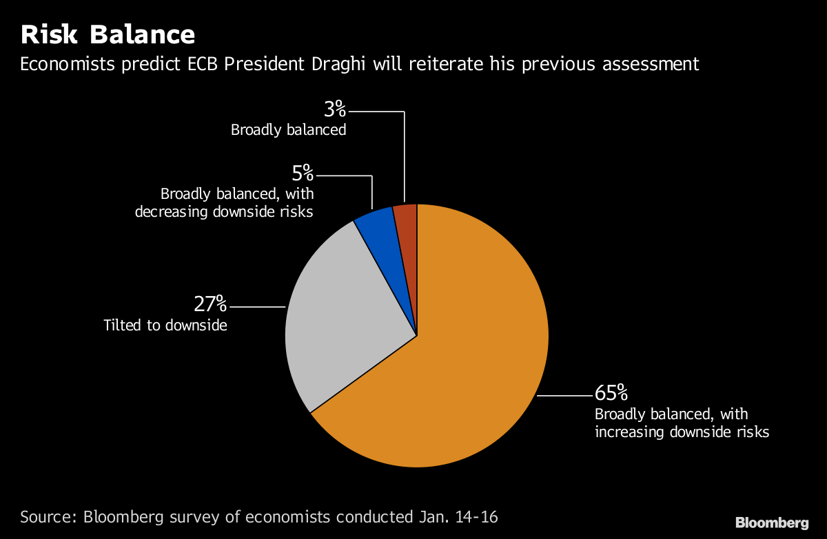 Economists predict the ECB will lower its outlook when projections are updated in March, and have extensively discussed in the run-up to Thursday’s meeting whether the recent spate of disappointing data will prompt policy makers to describe risks to growth as tilted to the downside.