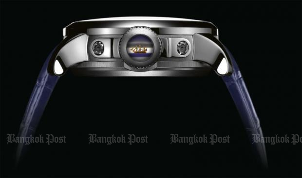 At 2 o'clock, the striking design has a raised titanium dome featuring a hand-punched background, meticulously engraved with the brand's key values, including "architecture savoir faire".
