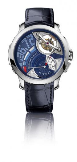 One can read the engraving as well as the time, the latter with hours discreetly indicated by a red hand on a rotating ring while minutes appear on an aperture when a pusher is pressed. Art Piece Edition Historique is a limited edition of 33 pieces, the first 11 presented in a 44mm platinum case.