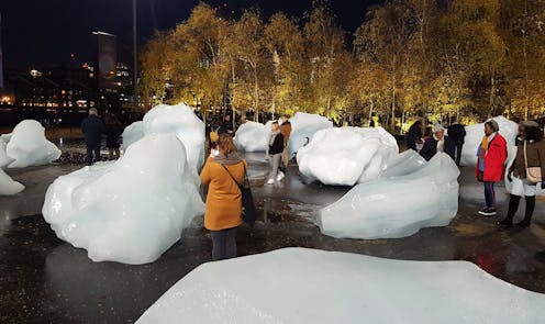 A statement about the artwork noted that the ice sheet from which these blocks were harvested is “losing the equivalent of 1,000 such blocks of ice per second throughout the year.” There were no graphs showing data about melting glaciers. Yet witnesses had a resonating experience about climate catastrophe.