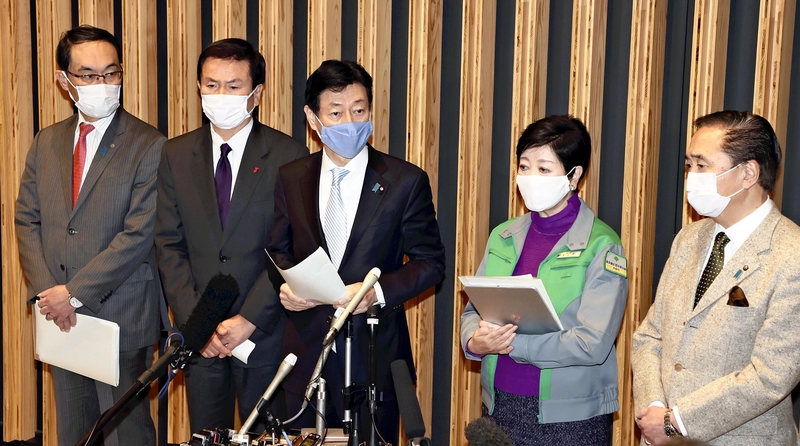 The governors of Tokyo and the three prefectures decided to request another declaration of a state of emergency because new infections with the novel coronavirus have been steadily rising. Tokyo's weekly average of new cases was about 150 in late October last year, but in mid-December the figure exceeded 500.