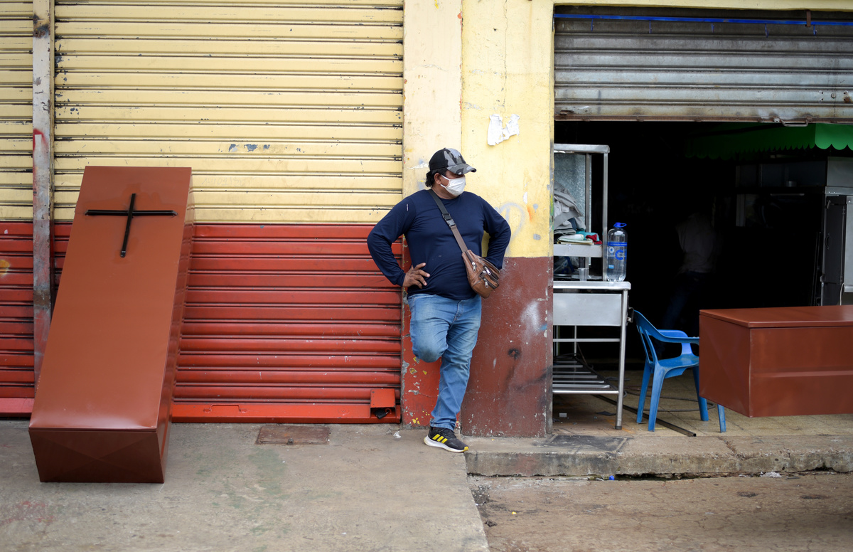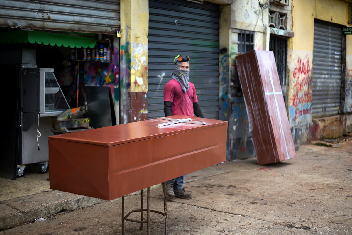 A worker is seen with empty coffins sent from Quito to Ecuador's social security institute as the coronavirus disease (COVID-19) overwhelms sanitary authorities, in Guayaquil, Ecuador April 8, 2020. REUTERS/Vicente Gaibor del Pino Funeral home workers in protective gear load a coffin containing the body of a man as the coronavirus disease (COVID-19) overwhelms sanitary authorities, in Guayaquil, Ecuador April 8, 2020. REUTERS/Vicente Gaibor del Pino Workers unload empty coffins sent from Quito to Ecuador's social security institute as the coronavirus disease (COVID-19) overwhelms sanitary authorities, in Guayaquil, Ecuador April 8, 2020. REUTERS/Vicente Gaibor del Pino Workers unload empty coffins sent from Quito to Ecuador's social security institute as the coronavirus disease (COVID-19) overwhelms sanitary authorities, in Guayaquil, Ecuador April 8, 2020. REUTERS/Vicente Gaibor del Pino A man is seen next to metal caskets made at a metal workshop as the coronavirus disease (COVID-19) overwhelms sanitary authorities, in Guayaquil, Ecuador April 8, 2020. REUTERS/Vicente Gaibor del Pino A truck delivers empty coffins sent from Quito to Ecuador's social security institute as the coronavirus disease (COVID-19) overwhelms sanitary authorities, in Guayaquil, Ecuador April 8, 2020. REUTERS/Vicente Gaibor del Pino A metal casket is seen outside of a metal workshop as the coronavirus disease (COVID-19) overwhelms sanitary authorities, in Guayaquil, Ecuador April 8, 2020. REUTERS/Vicente Gaibor del Pino A metal casket is seen outside of a metal workshop as the coronavirus disease (COVID-19) overwhelms sanitary authorities, in Guayaquil, Ecuador April 8, 2020. REUTERS/Vicente Gaibor del Pino People construct burial vaults in the Angela Maria Canalis cemetery as the coronavirus disease (COVID-19) overwhelms sanitary authorities, in Guayaquil, Ecuador April 8, 2020. REUTERS/Vicente Gaibor del Pino Construction equipment is seen preparing a new cemetery as the coronavirus disease (COVID-19) overwhelms sanitary authorities, in Guayaquil, Ecuador April 8, 2020. REUTERS/Vicente Gaibor del Pino