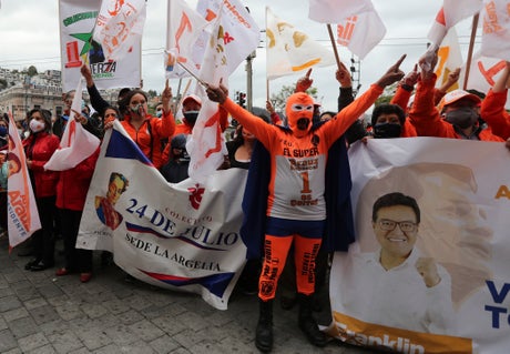 In a distant third place in the polls comes Yaku Pérez, representing an Indigenous party.