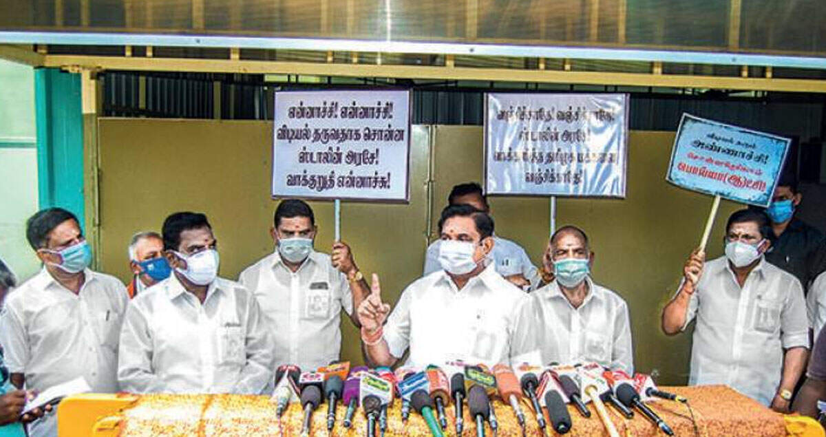 CHENNAI: The opposition AIADMK, on Wednesday, held a state-wide agitation in Tamil Nadu against the DMK government’s failure to implement its poll promises like cancellation of Neet examination, providing monthly assistance of Rs 1,000 to women homemakers, reduction of fuel prices and waiver of educational loan and jewel loan.