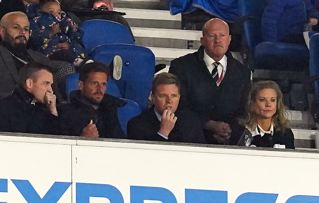 The 43-year-old was pictured sitting next to Amanda Staveley, whose consortium bought out Mike Ashley last month, in the stands at the Amex Stadium during the Premier League clash between the two sides.