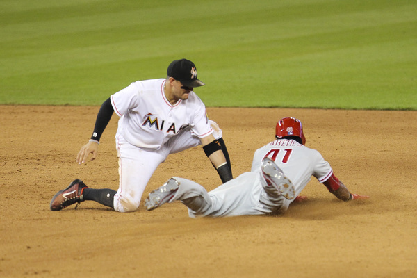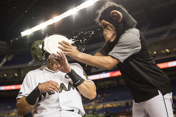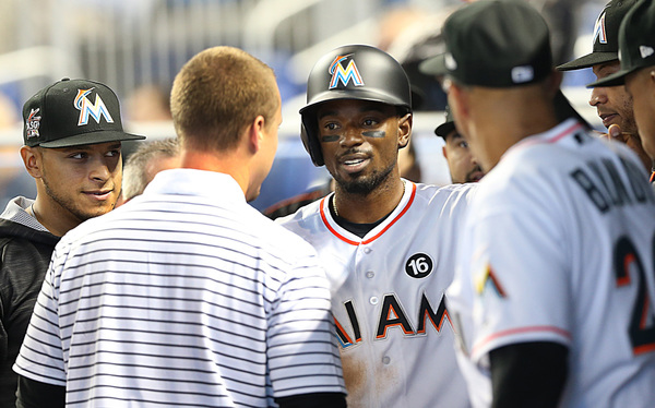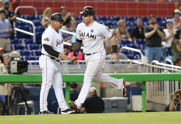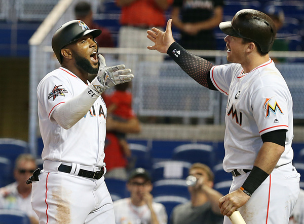 Miami's first run came when Dee Gordon double inside the right-field line to score J.T. Riddle, who had led off with a single. Giancarlo Stanton then singled up the middle to plate Gordon.