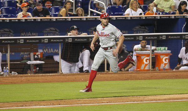 Volquez worked around two baserunners in the first inning, but settled in to retire 13 Phillies in a row. He found more trouble in the sixth, walking the opposing pitcher to lead off and putting two runners in scoring position with nobody out, but escaped allowing only one run.
