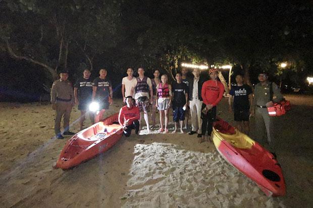A navy vessel was assigned to search for them and found the three tourists lost and disoriented but still safe in their kayaks. They were were taken to nearby Khlong Phrao beach, arriving about 7pm.