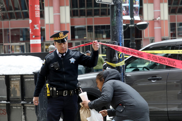 Ashen-faced Chicago police clustered on sidewalks _ cold tears on blue coats _ around the Thompson Center and at Northwestern Memorial Hospital. Streets were blocked by yellow tape; traffic clotted; pedestrians gathered in knots to talk and gawk. The entire Loop seemed like a crime scene. Because it was.