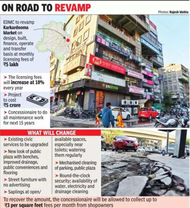 NEW DELHI: The East Delhi Municipal Corporatio (EDMC) will hire a private concessionaire to revamp the busy Karkardooma Market and upgrade its public plaza, parking area, toilets and footpaths.
