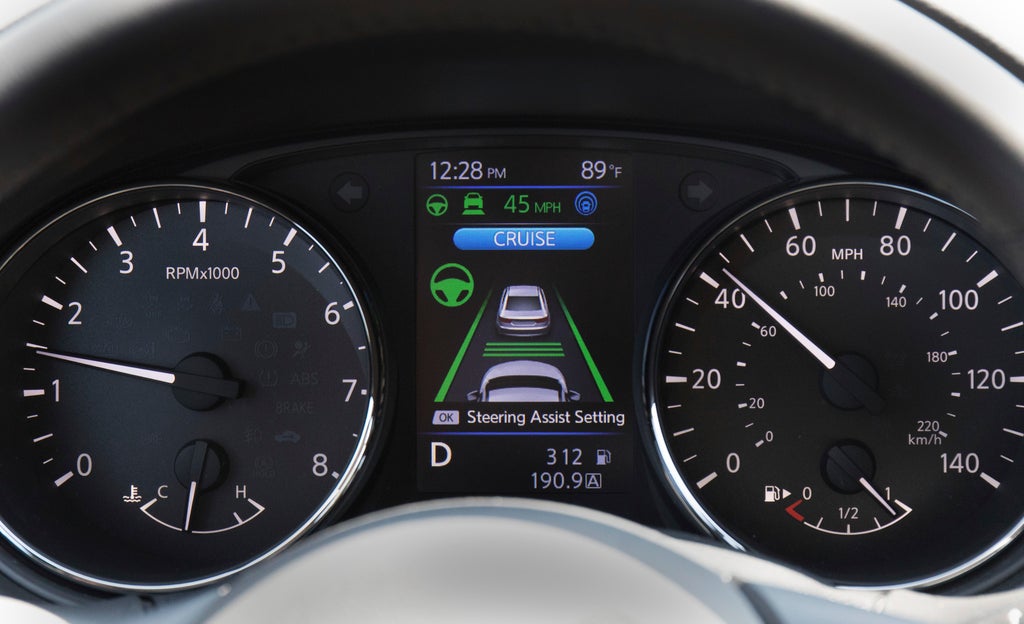 Adaptive cruise control can adjust your speed to maintain a constant distance between your vehicle and the car in front. Some systems can bring a vehicle to a complete stop and then speed up again when traffic starts to move. Others can also react to traffic signs and set speed accordingly. Some manufacturer names you might come across include Dynamic Radar Cruise Control (Toyota), Smart Cruise Control (Hyundai) and Intelligent Cruise Control (Nissan).