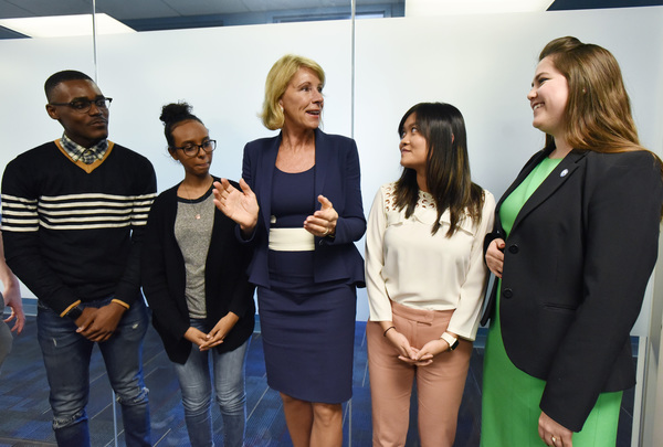 The students asked DeVos questions about technical glitches that occur when filling out the forms and offered her suggestions, such as creating a program that answers students' questions in real time.