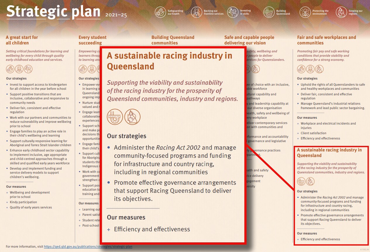 "The racing function must be reflected in the department's strategic plan alongside the department's other key portfolios of early childhood education, school education and the Office of Industrial Relations."